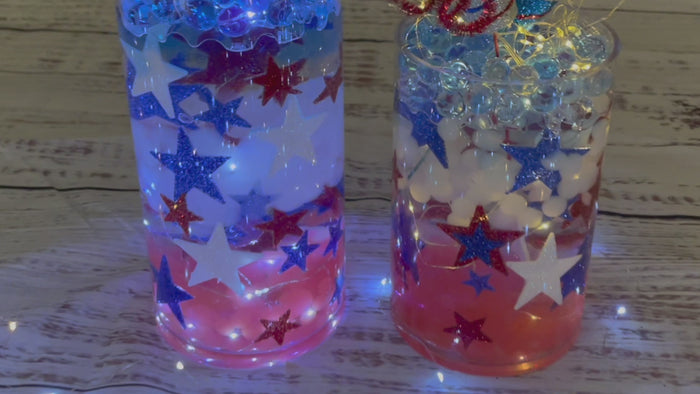 75 Floating Glitter Patriotic Stars & Red/Blue Color Effects- Fill 1 Gallon of Transparent Gels for Floating Effect-With Measured Floating Gels Bag-Option of 3 Fairy Lights Strings
