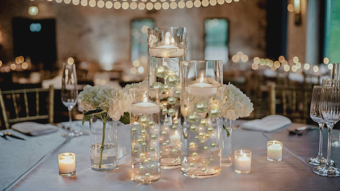 1 GL Floating Gold Glitter Pearls with Option of Submersible Fairy Lights - with Pre-Measured Prep & Storage Bags - Vase Decorations
