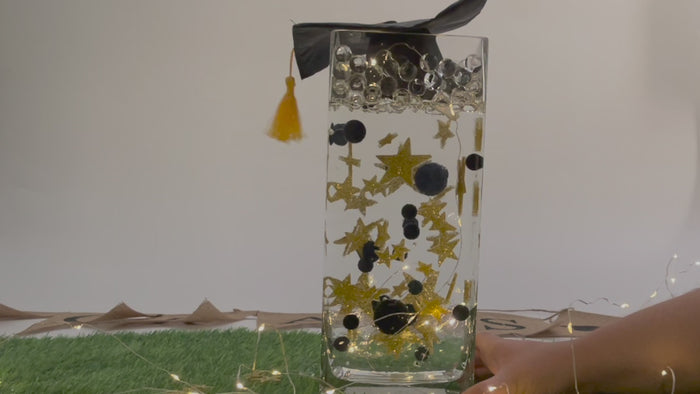 1 GL Floating Gold Glitter Pearls with Option of Submersible Fairy Lights - with Pre-Measured Prep & Storage Bags - Vase Decorations